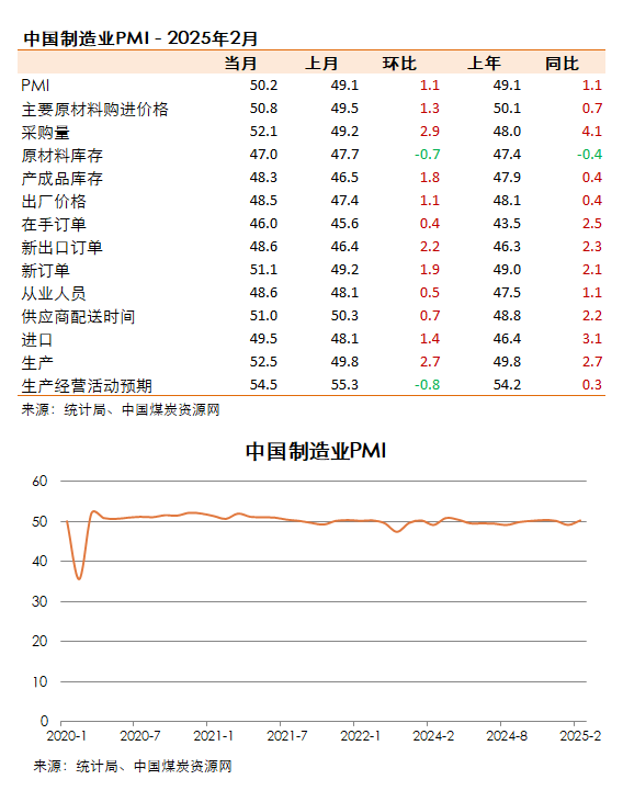 2月份,制造業(yè)PMI升至50.2%,重返擴張區(qū)間。